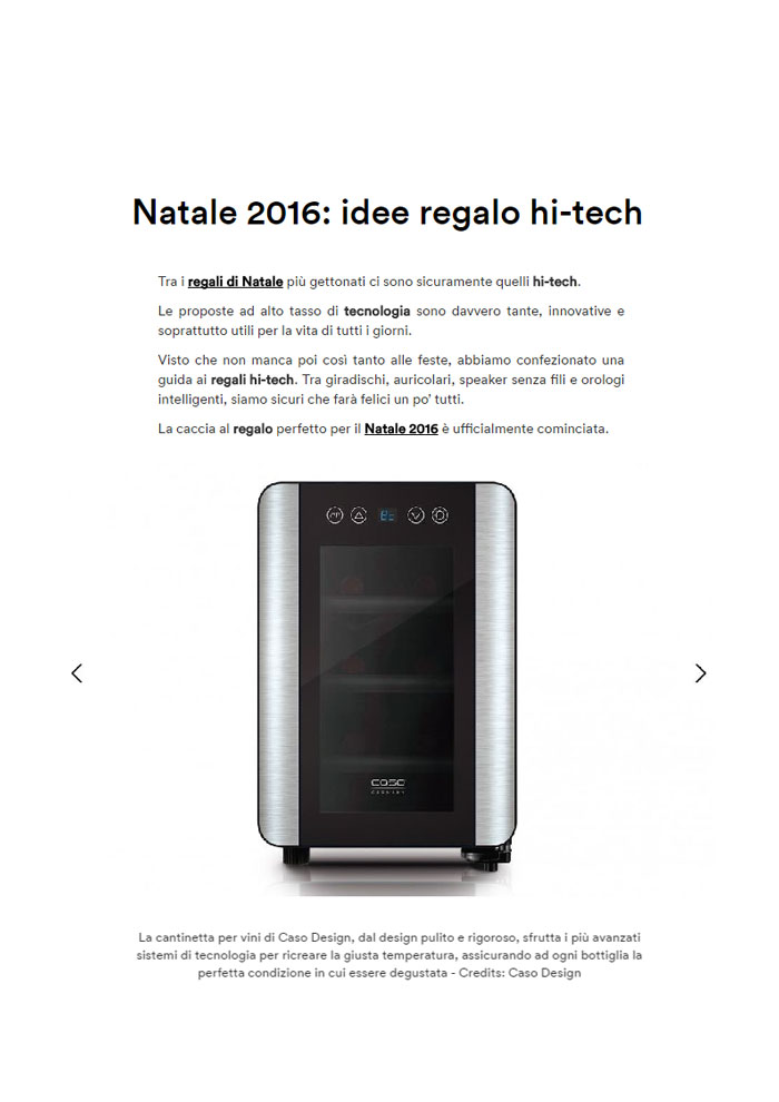 La cantinetta Caso Design viene consigliata dalla redazione di Icon Design fra i migliori regali hi tech da fare per il Natale 2016.