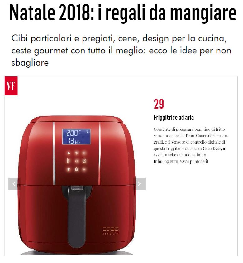 Press La friggitrice ad aria di Caso Design fra i regali di Natale di VanityFair 19 dicembre 2018 - Pubblicato da: admin « Vai alla categoria Press