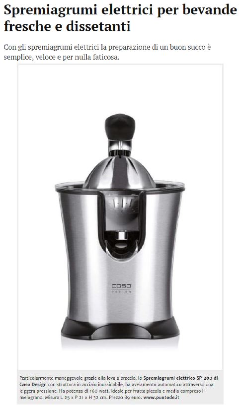 Press Lo spremiagrumi elettrico di Caso Design consigliato da Cose di Casa 30 luglio 2018 - Pubblicato da: admin « Vai alla categoria Press