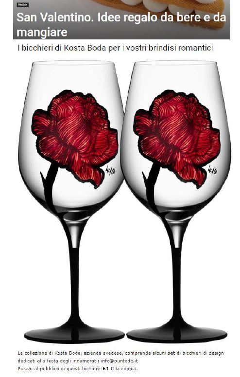 Press A San Valentino si brinda con Kosta Boda secondo Scatti di Gusto 10 febbraio 2020 - Pubblicato da: admin « Vai alla categoria Press