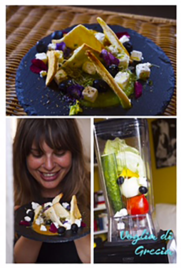 impiattare a piacere utilizzando i cubetti di feta, le olive tritate, i germogli , i costini di pane e le nostre salse coloratissime.