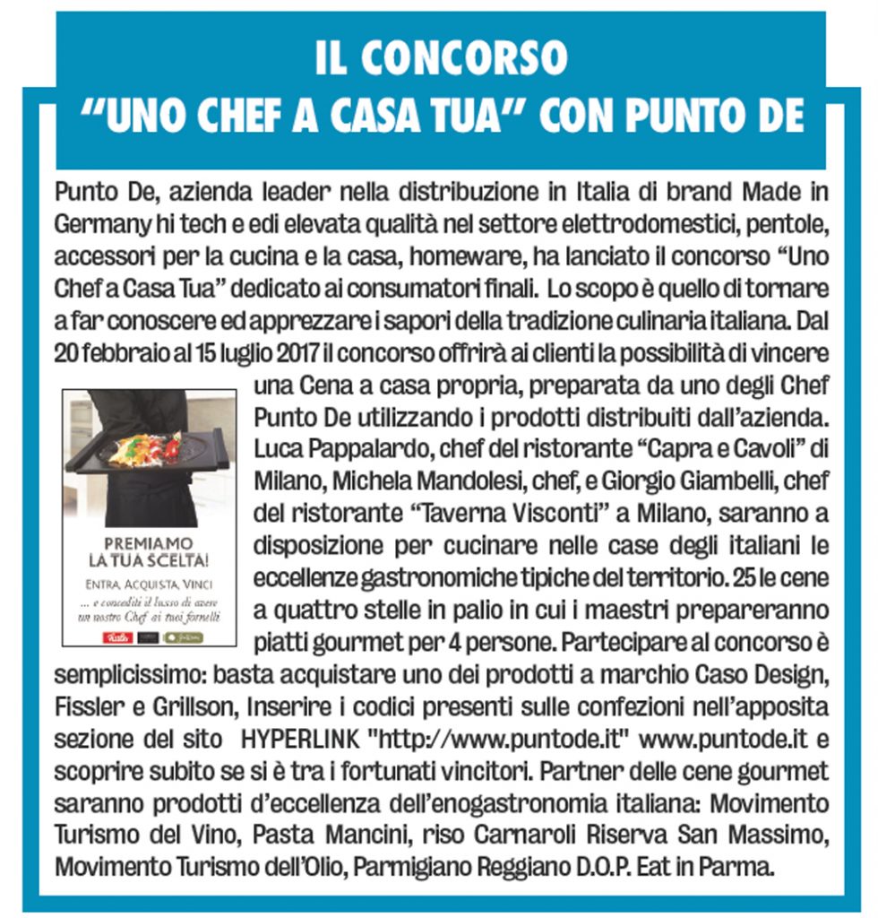 The article is entirely dedicated to the contest “A chef at your home” launched by Punto De .
