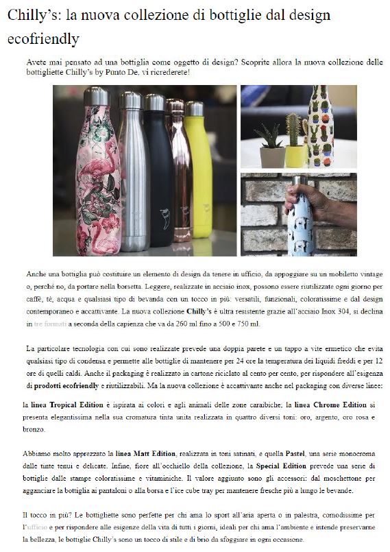 Press Chilly’s bottles on LifestyleMadeinItaly.it 22 February 2018 - Published by: admin « Go to categoryPress