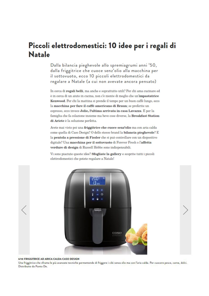 The editorial staff of LaCucinaItaliana.it recommends the Caso Design Design hot air fryer as the perfect Christmas present for those who love small kitchen appliances.